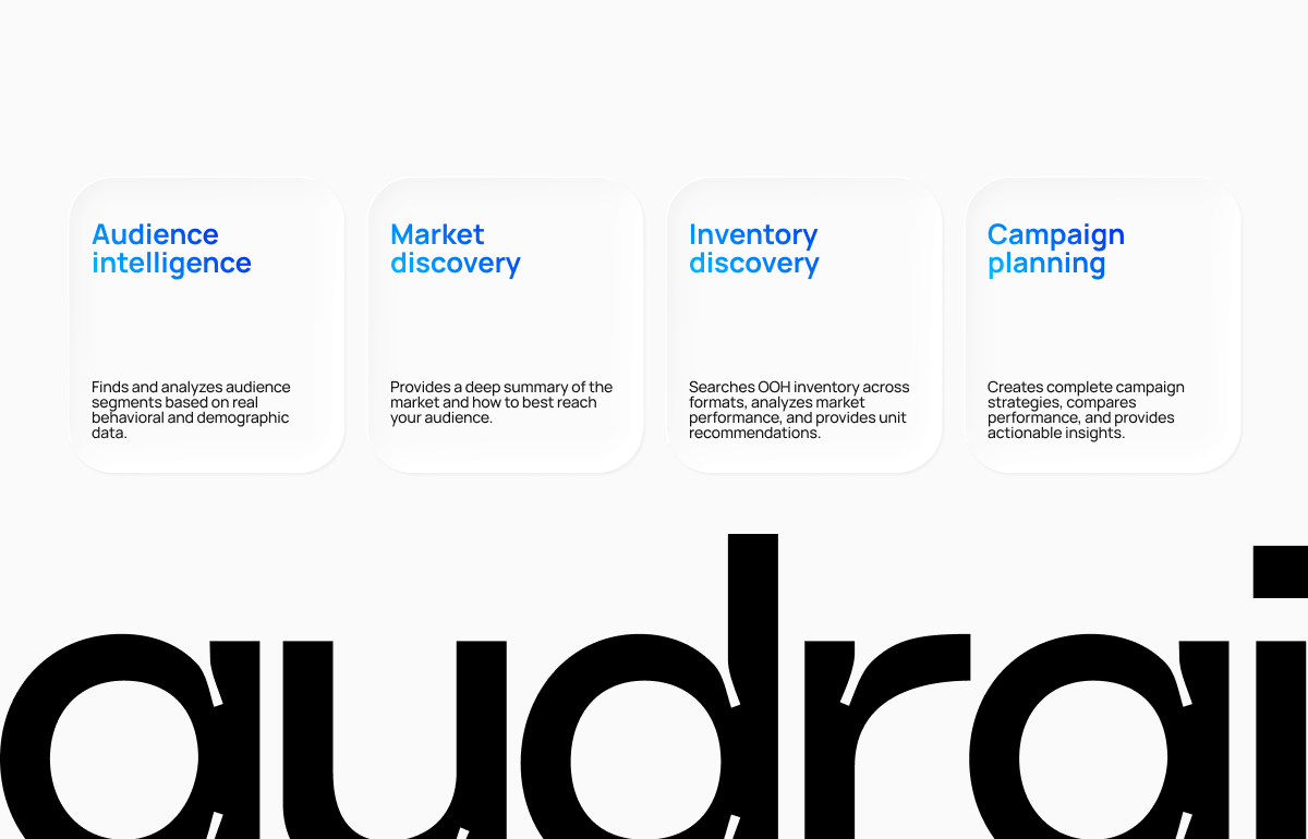 For example, when we developed audrai, our agentic AI system built specifically for Out-of-Home, the goal wasn’t simply to automate planning workflows or accelerate geospatial modeling. It was to remove repetitive, structured tasks so our teams could focus on higher-order strategy, contextual insight, and client problem-solving.