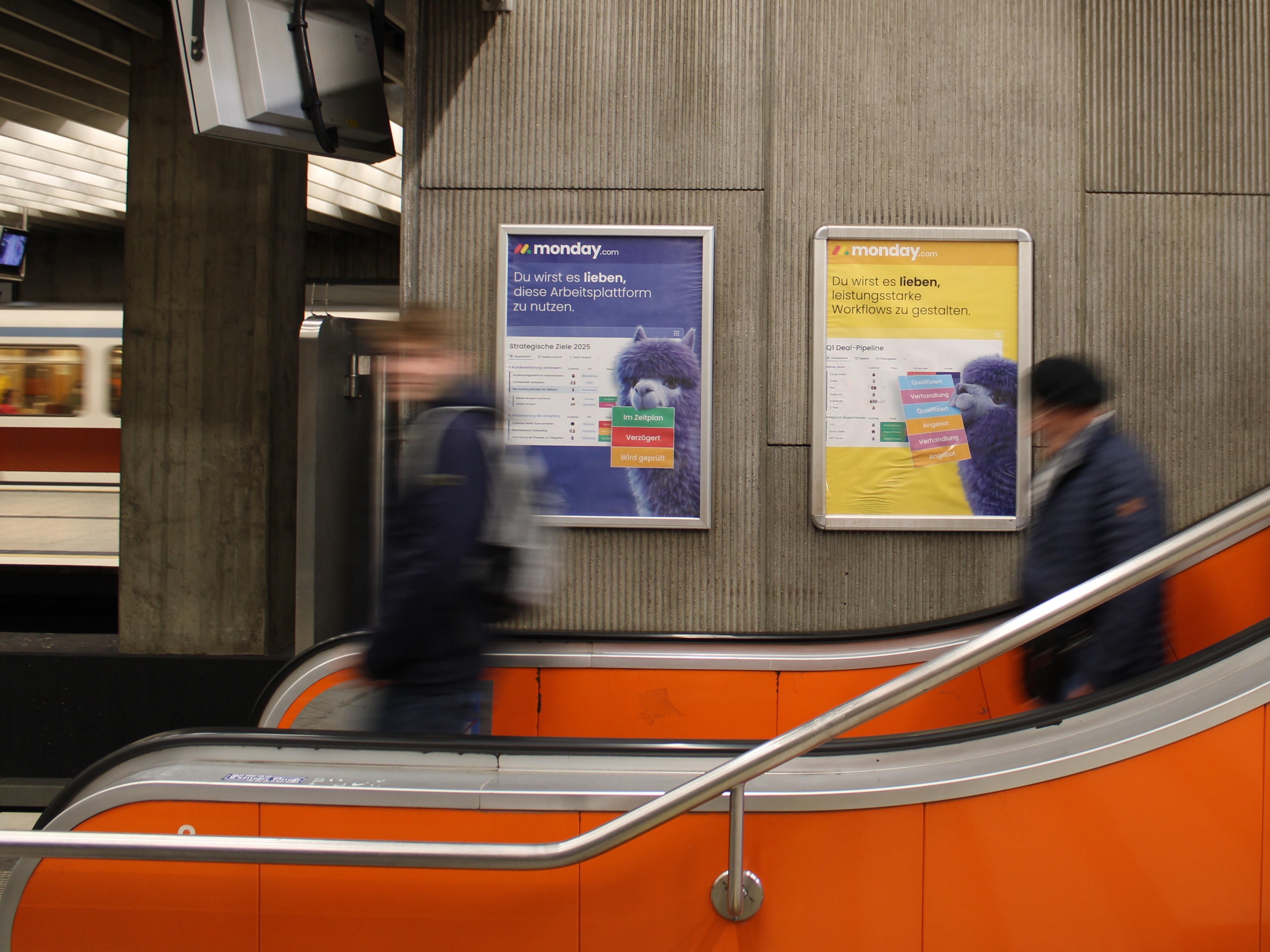monday.com worked with billups to run a high-impact OOH campaign in Berlin, Munich, and Hamburg, targeting mid- to senior-level decision-makers in companies with 500 or more employees. The goal was to raise awareness and consideration for monday.com as a leading work management platform while embedding the brand into professional routines.